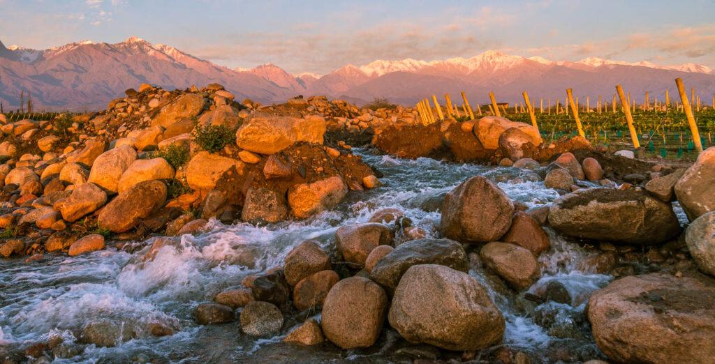 In Mendoza’s Uco Valley, our high-altitude vineyard is located at 3,600 feet of elevation, in the foothills of the snow-peaked Andes. Our winegrowing subappellation is the prestigious IG, or Indicación Geografica, Los Chacayes. Situated on an alluvial fan, or ancient riverbed, Los Chacayes is notable for its gravelly, rocky soils, which make for characterful wines, notable for their powerful tannins and fresh acidity.